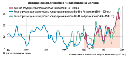 «Пожалуй, самым впечатляющим результатом полученного графика солнечной активности можно считать подтверждение исторической уникальности резкого скачка образующихся пятен в течение второй половины XX века. В то время как среднегодовое число 'реконструированных' солнечных пятен за период с 850−го по 1900 год составило примерно 30, усредненные данные по прошлому столетию — 60, а по периоду с 1944 года — 76», — говорит Илья Усоскин.