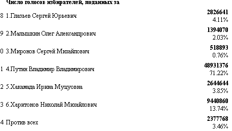 Владимир Путин - 70,2% избирателей;
