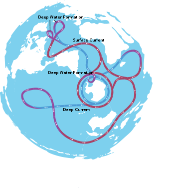 теоретически все планетарные течения объединяются в такую картину (вроде бы получается, этот конвейер - остаток от другого более глобального планетарного подводного конвейера течений. при нем равномерно прогревалась вся планета)