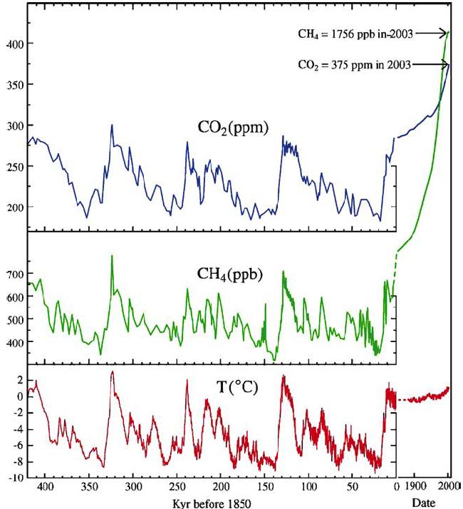 Да и из графика после 1850-го парабола просматривается на графике CO_2, где метан и температура в дополнение (и за предыдущие 420 тыс.лет по результатам бурения льда)