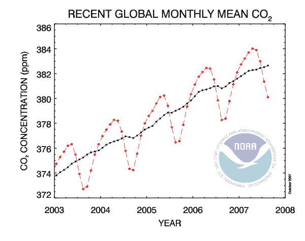 так вы мне скажите, увеличилось ли содержание CO2 c 2000 по 2007 годы на 2.9*7 = 20.3 % ?По данным NOAA, что только что выложил чуть больше чем по +2ppm/yr т.е. +16 ppm за 10 лет. Можешь радоваться, что пиздец не такой резкий.