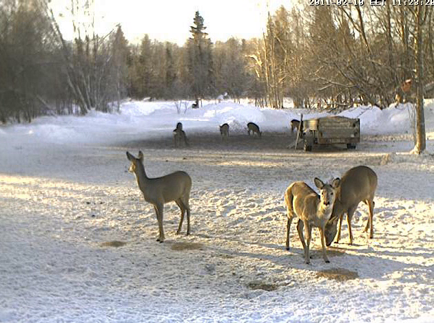 Косули, енотовидки, лисы, лось разве подойдут в присутствии человека?