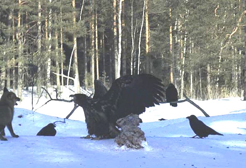 ворона тоже добрая тварь пытается зайти сзади и видать хочет за хвост ухватить