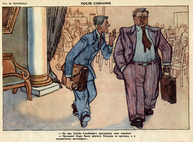 — Признаю! Надо было уволить Петрова за критику, а я ограничился выговором...