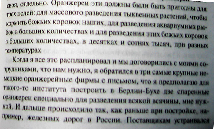 Вот тут из воспоминаний Тимофеева-Ресовского. Получается, что все эти вещи — это не придумка последних лет. Рассказывает он это уже на пенсии, в 70-е годы, то есть когда и нефтедоллары были и вообще самый расцвет, космос и всё такое. Даже непонятно, как бы можно было разгрести такое наследство. Про Германию — это 20-е годы.