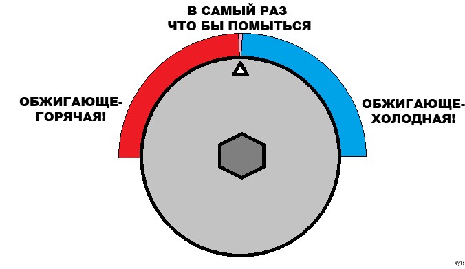 А вот смесители холодной и горячей воды у меня не содержат не то, что климат-контроля, но даже хотя бы термометра, показывающего текущую температуру. Прежде, чем организовать нужные 38 градусов, приходится повертеть ручку туда-сюда. Что-то такое творится:
