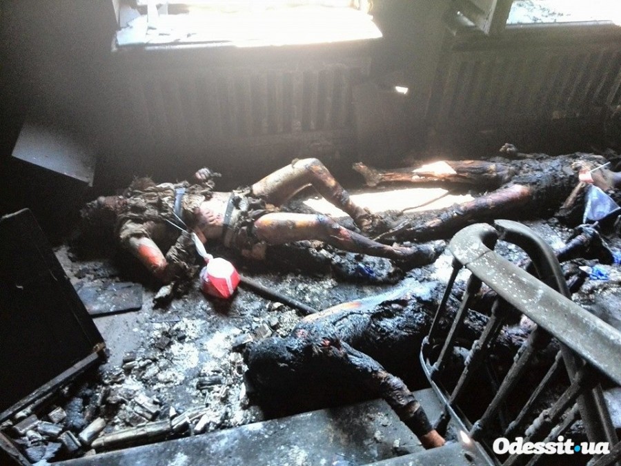 неофициально более 160 трупов не вывозят из подвала этого здания. Украинская власть говорит, что они сами себя сожгли