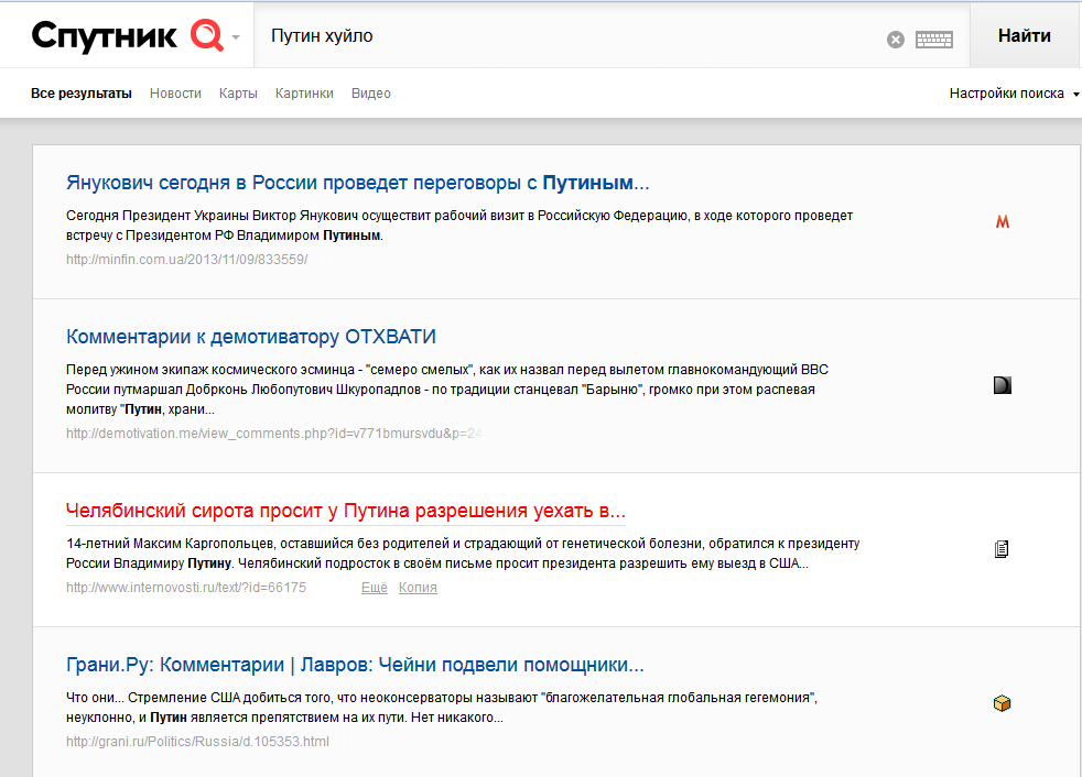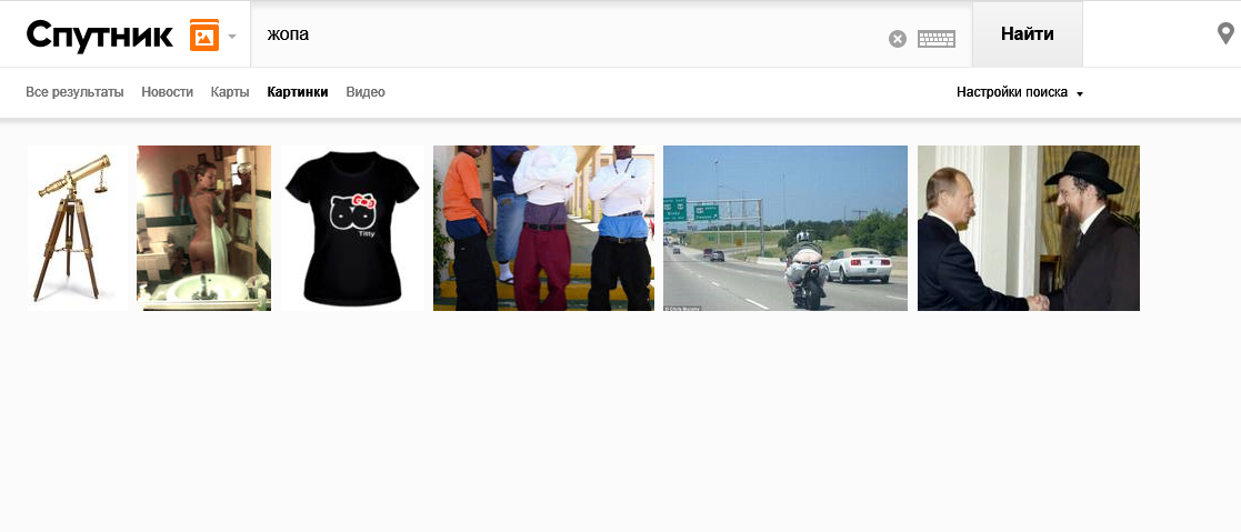 Очень удивлён и рад за них, что они вообще запустили поисковик. Был уверен, что это очередной 100%-ый попил, а у них кое-что всё-таки работает. Правда, я посмотреть не могу, но судя по этому треду и по обсуждениям на хабре, худо-бедно "Спутник" что-то ищет.