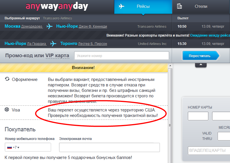 Агентство не предупредило о визе для пересадки в США