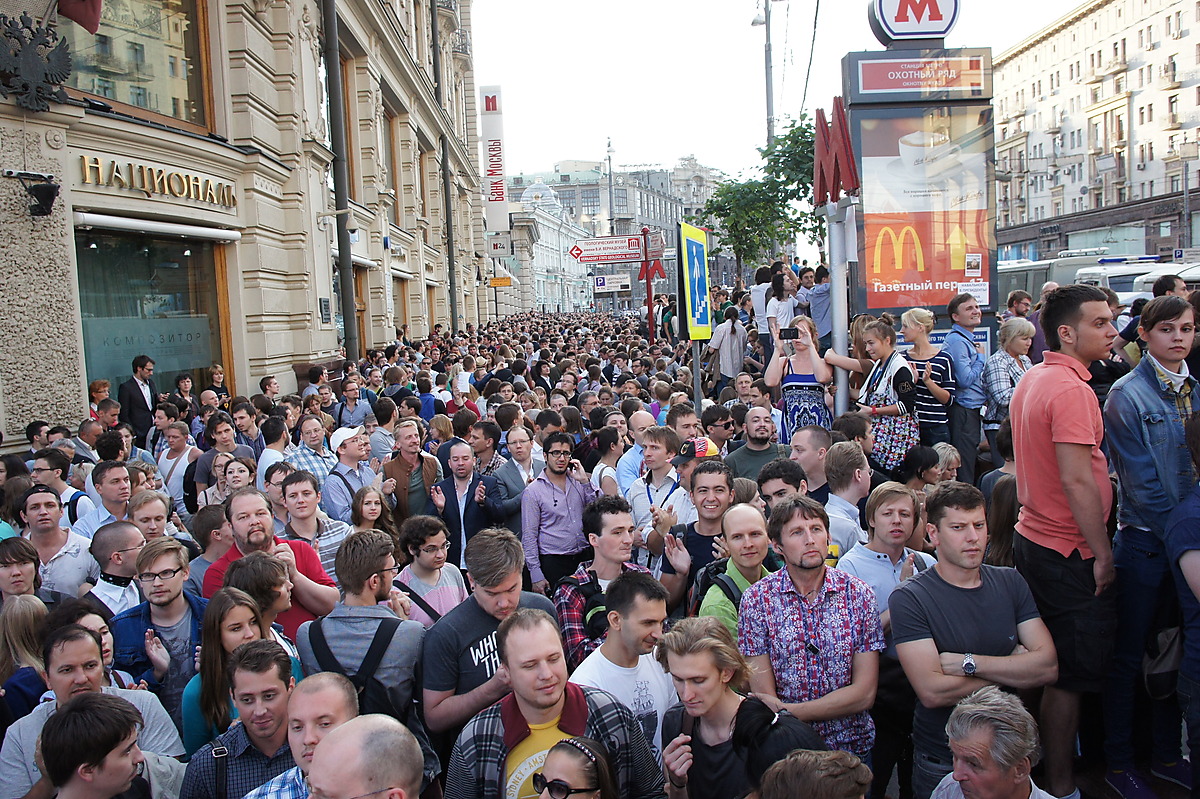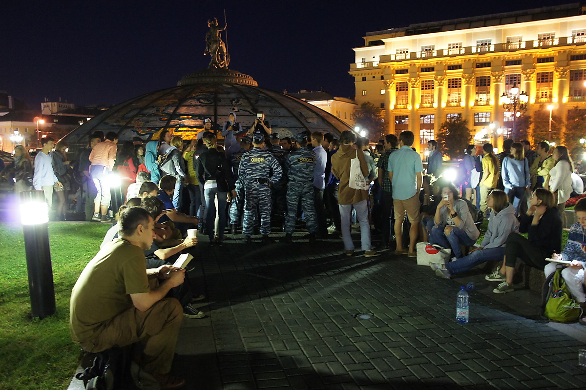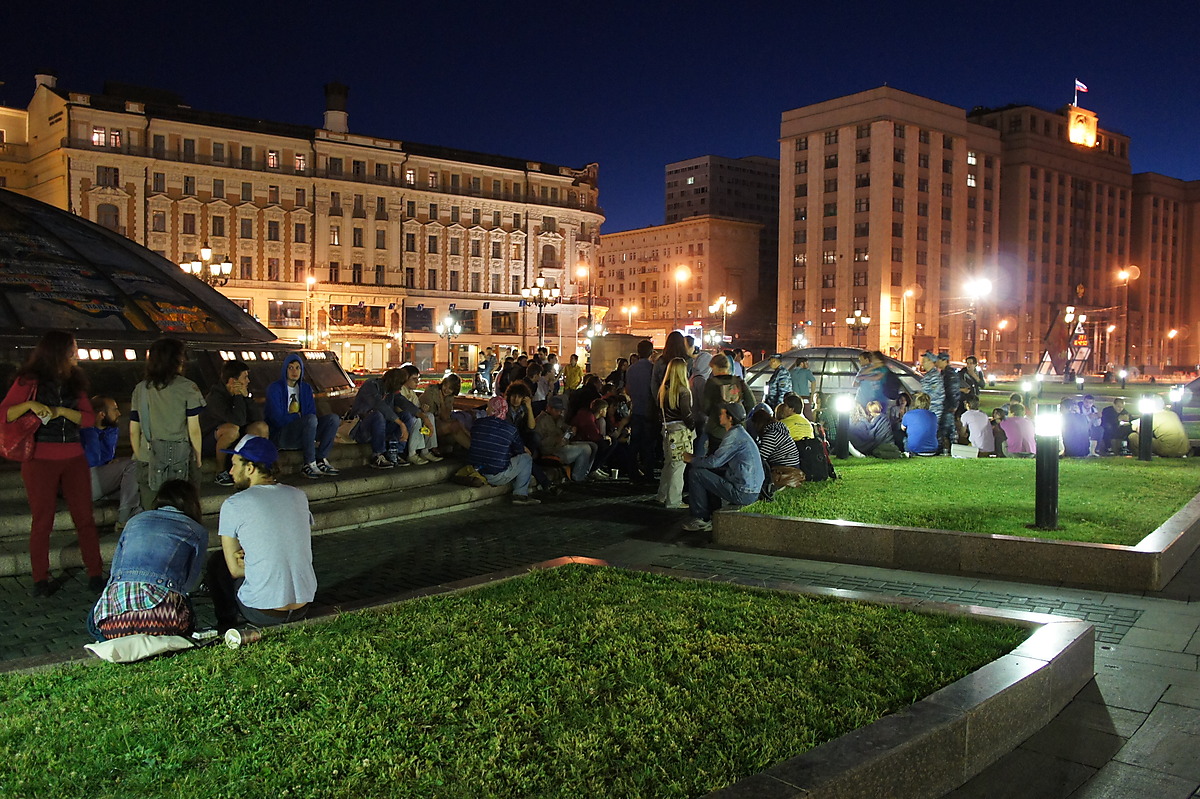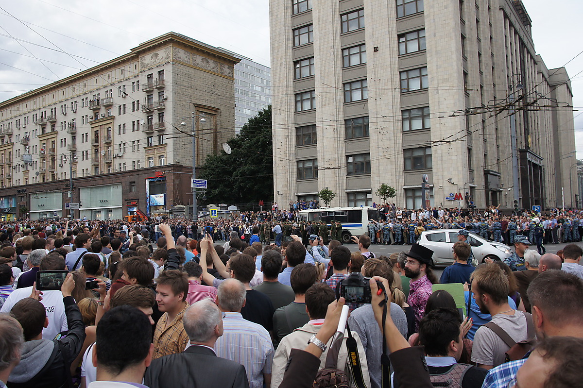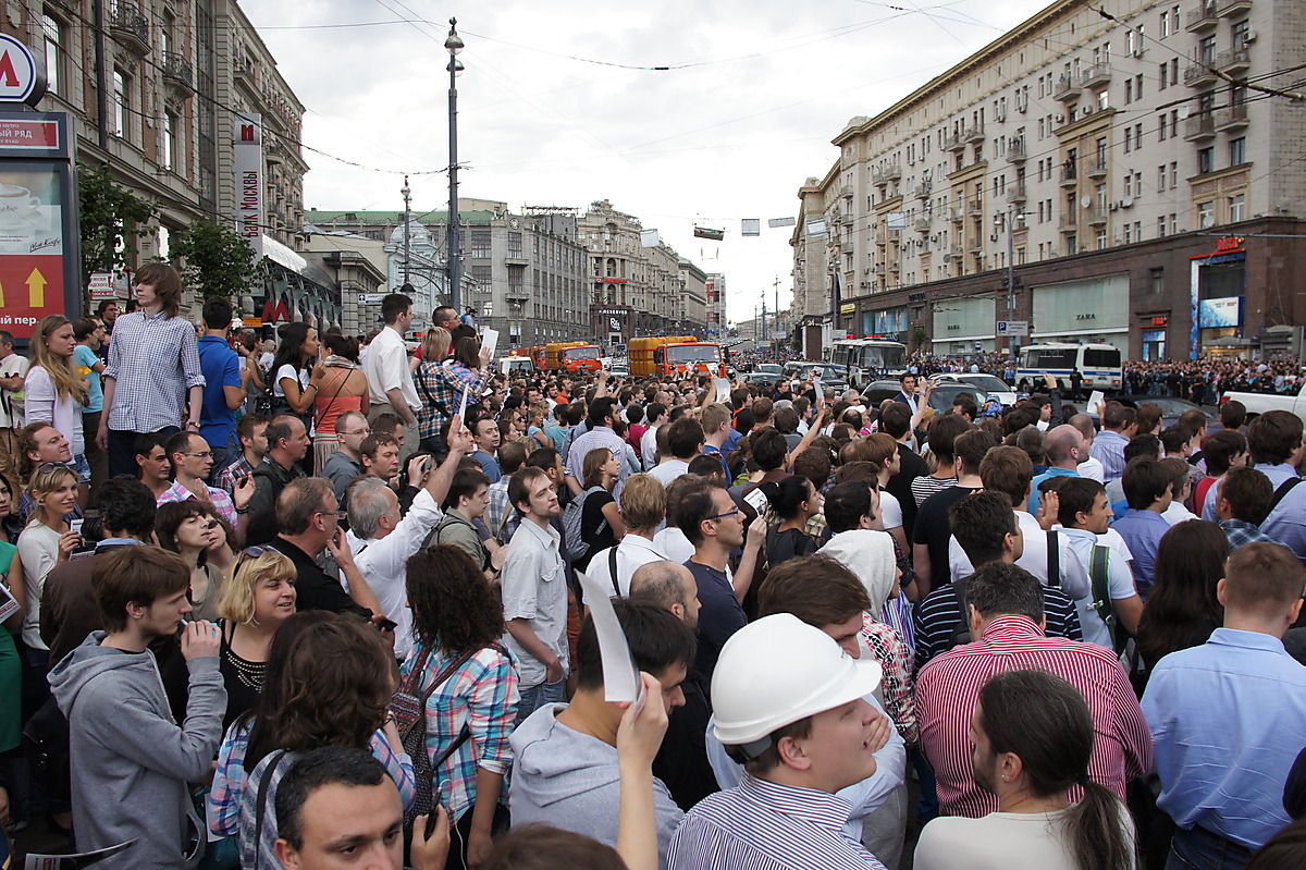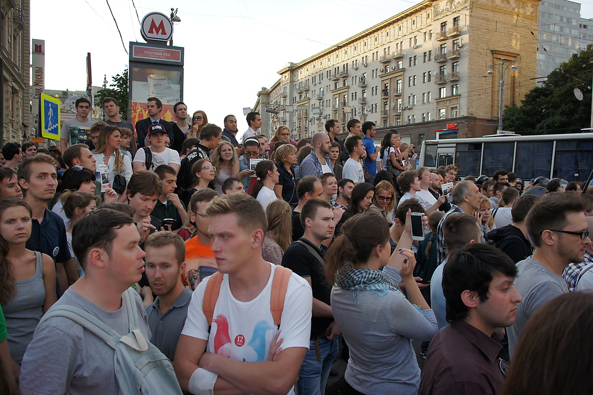 Мы пришли и стояли со стороны "Националя". В принципе, когда стоишь, всегда не понятно, сколько людей, так как обозреваешь только свою кучку. Судя по фото с вертолёта, в пиковое время было много. Потом на той стороне народ рассосался. Народ из тех людей, с которыми я был, в какой-то момент решил свалить, я остался. Прогулялся сначала со своей стороны, понял, что там народа уже мало, пошёл в сторону ГД,