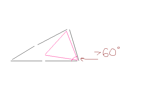 Если на ней нельзя построить правильного треугольника, врезанного в ABCDE, значит, угол A < 60 (все в градусах BE < 1.Почему? Может три оставшихся стороны твой треугольник пересекают?