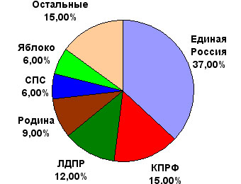 ЛДПР - 15, КПРФ - 12 по избиркому, социологи - все наоборот. Уже не входит в погрешнисть. Да и СПС больше, чем на 2.