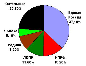 "7 декабря 2003 года партия ЕдиноРоссы набрали на выборах 40% по партийным спискам, что, вместе с одномандатниками, которые на плакатах чаще всего были напечатаны рядом с главным ЕдиноРоссом региона, дало им абсолютное большинство в думе".