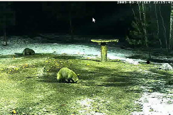 там показывали полянку с кормушкой, куда приходили кабанчики и чавкали так прикольно