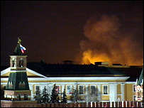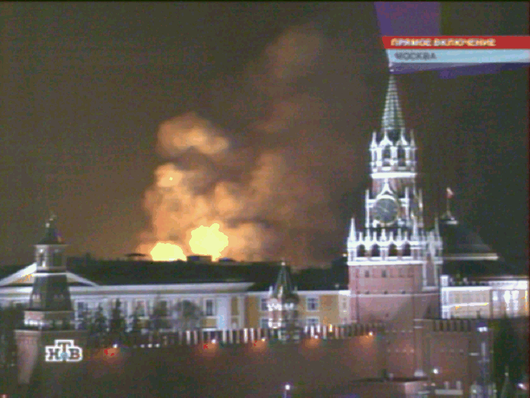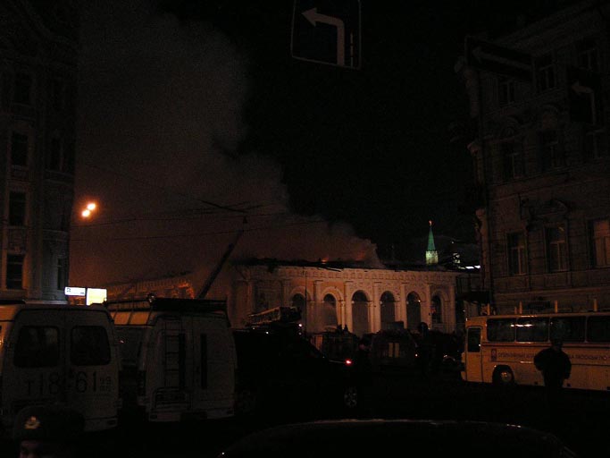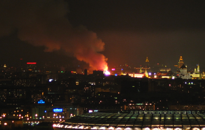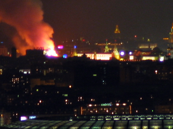 Блин... До сих пор полыхает! И хоть бы хны. Разве Манеж так просто поджечь? Это небось постараться сильно было надо!