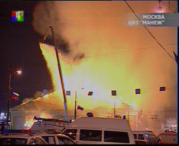 Проанализировав характер горения московского Манежа, пожарно-технические эксперты МЧС и ФСБ пришли к выводу о том, что чердак здания не мог загореться случайно - от окурка, короткого замыкания или петарды, о которых сообщалось ранее, пишет сегодня «Коммерсант». "Пожару предшествовал мощный выброс тепловой энергии, создать который можно только с помощью горючих жидкостей или пиротехнических средств"