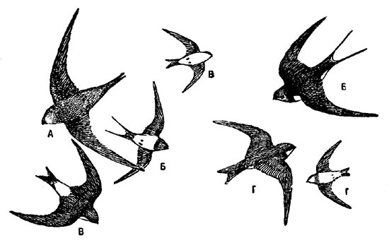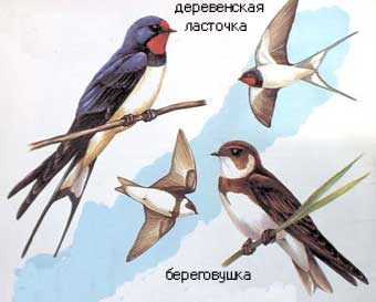 Ну вот картинка из гугла, на которой изображены ласточки и стрижи.