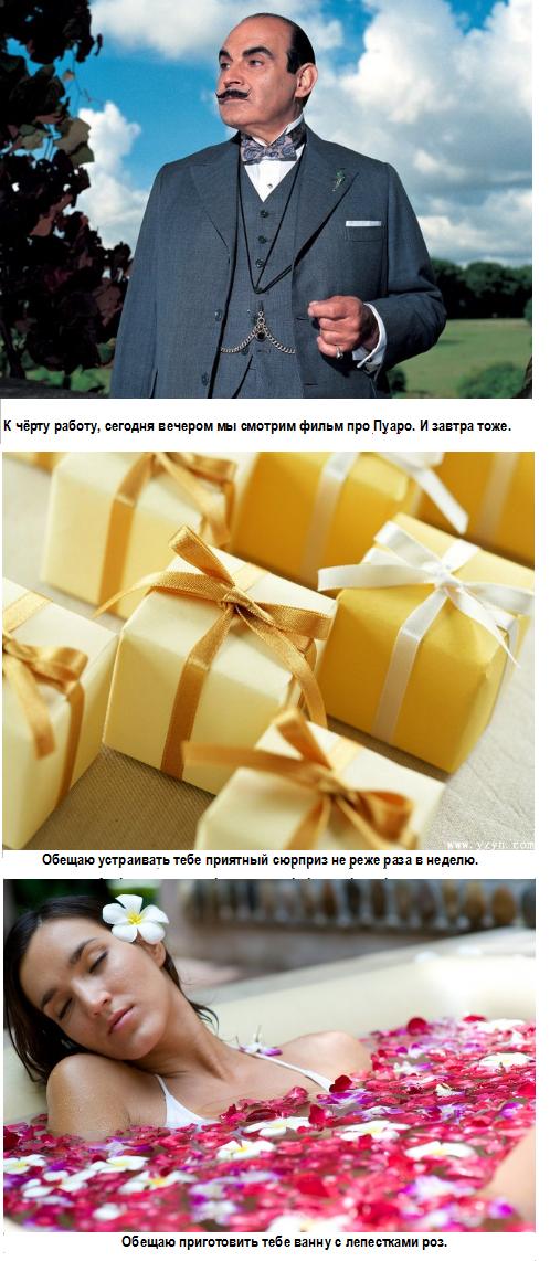 ) и совместный просмотр фильмов про Пуаро) - и пусть отдаёт по карточке при каждой ошибке на выкупе. Реально интересно жениху, и очень приятно невесте потом
